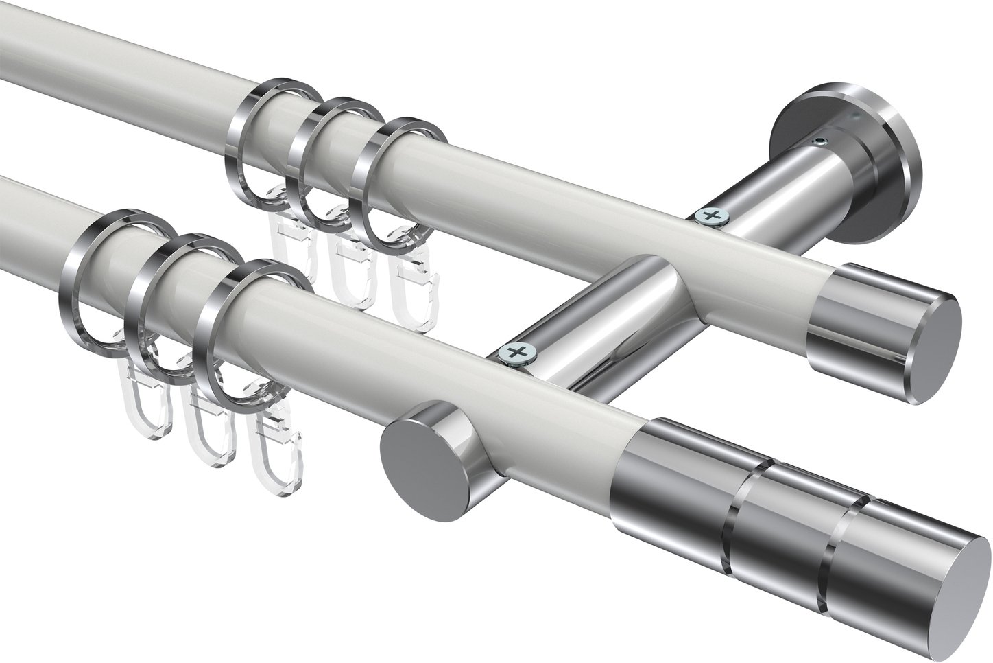 Gardinenstangen aus Metall in 20 mm Ø, 2-läufig, Modell PLATON - Elanto Weiß / Chrom
