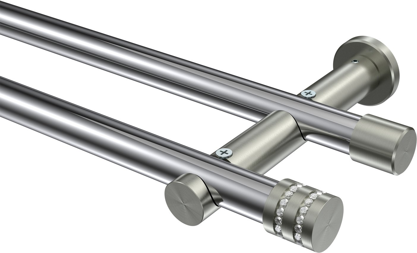 Informationen zu Gardinenstange Metall 20 mm Ø 2-läufig PLATON - Estana Chrom / Edelstahl-Optik (ohne Ringe):