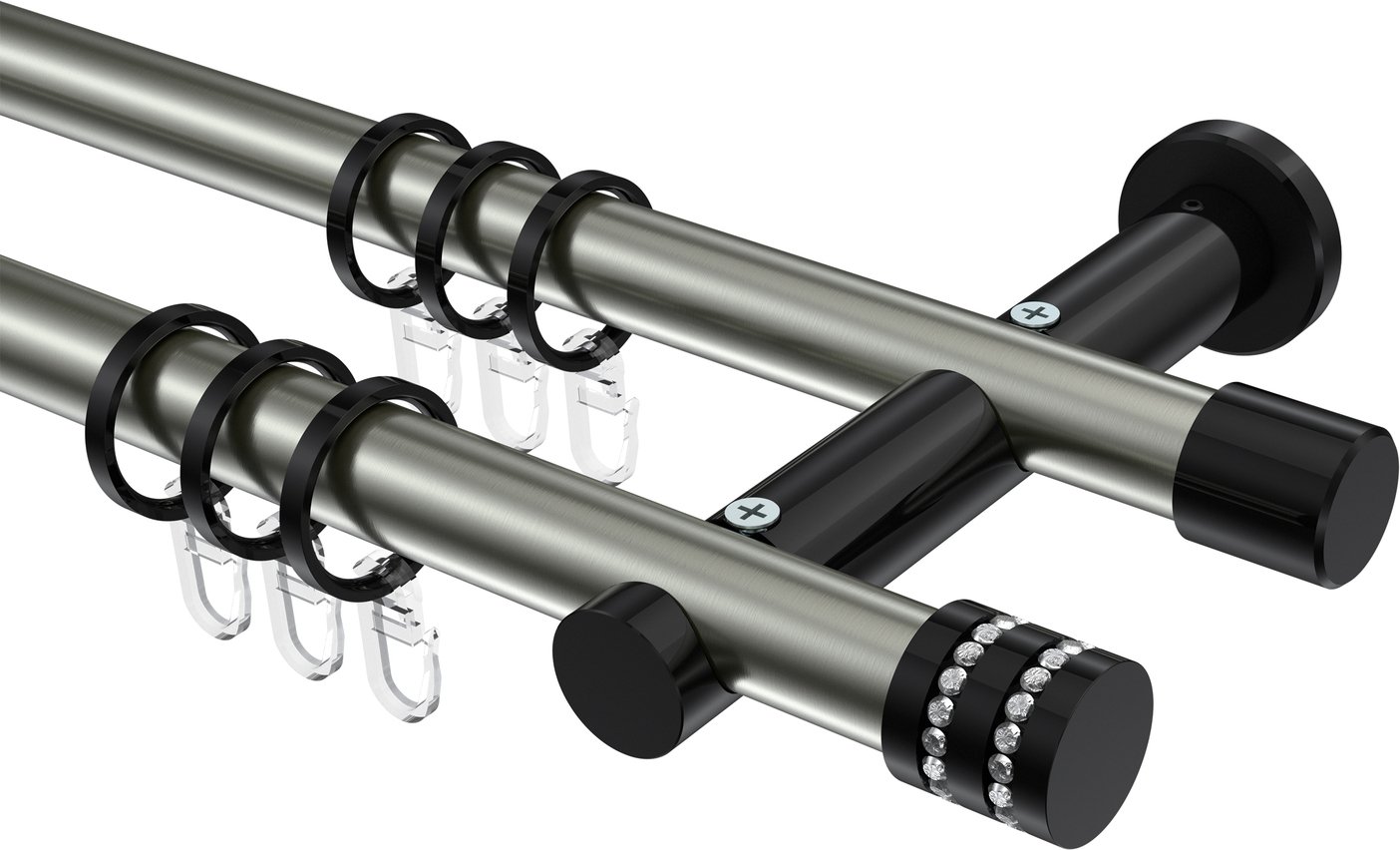 Informationen zu Gardinenstange Metall 20 mm Ø 2-läufig PLATON - Estana Edelstahl-Optik / Schwarz: