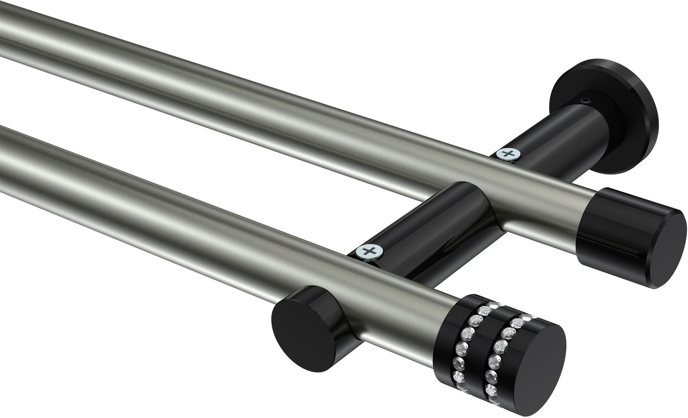 Informationen zu Gardinenstange Metall 20 mm Ø 2-läufig PLATON - Estana Edelstahl-Optik / Schwarz (ohne Ringe):