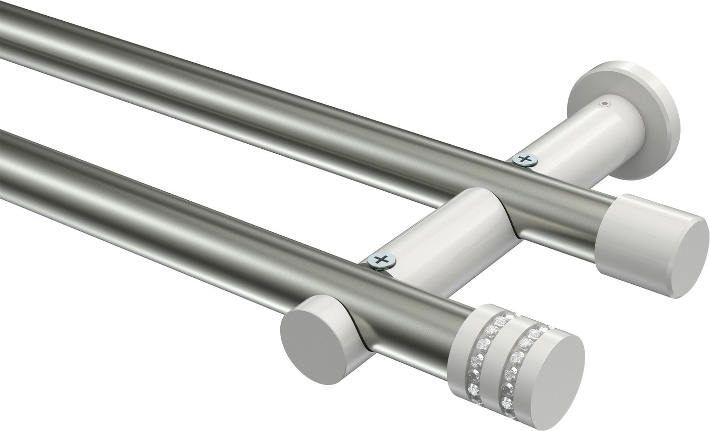 Informationen zu Gardinenstange Metall 20 mm Ø 2-läufig PLATON - Estana Edelstahl-Optik / Weiß (ohne Ringe):