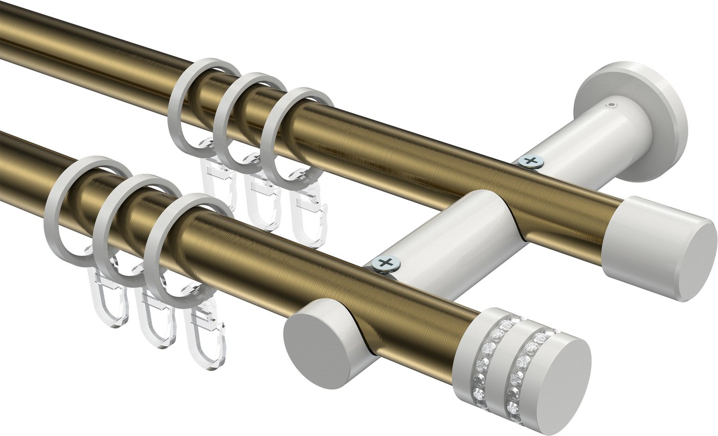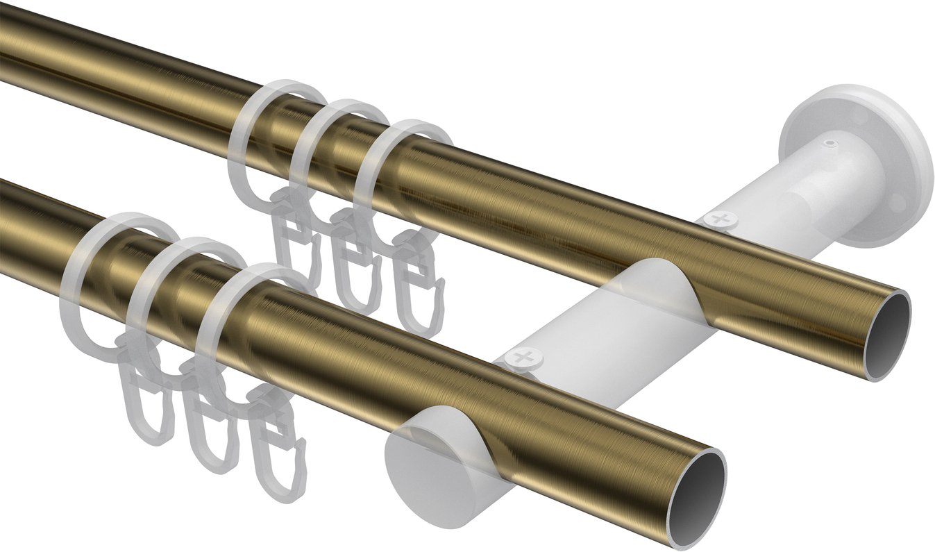 Gardinenstangen aus Metall in 20 mm Ø, 2-läufig, Modell PLATON - Estana Messing Antik / Weiß