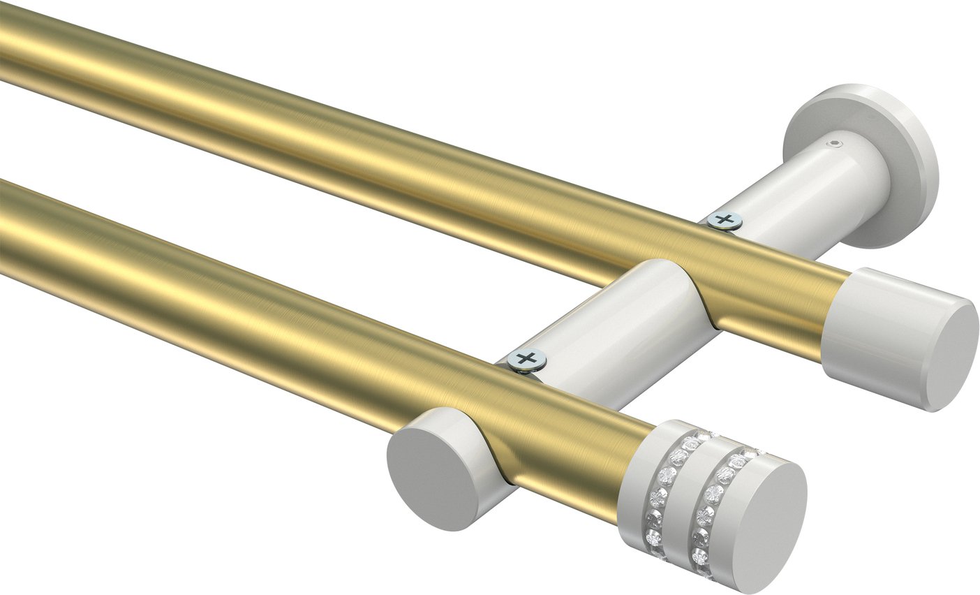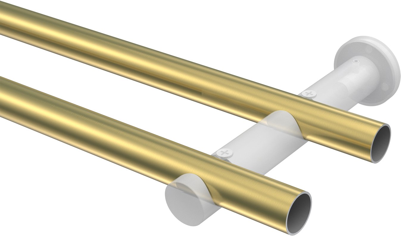 Gardinenstangen aus Metall in 20 mm Ø, 2-läufig, Modell PLATON - Estana Messing-Optik / Weiß (ohne Ringe)
