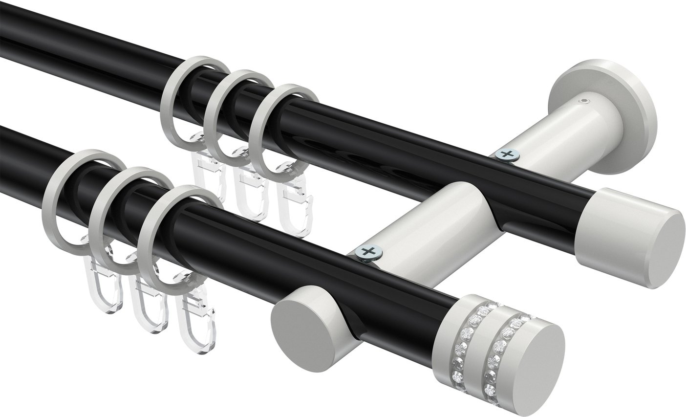 Gardinenstangen aus Metall in 20 mm Ø, 2-läufig, Modell PLATON - Estana Schwarz / Weiß