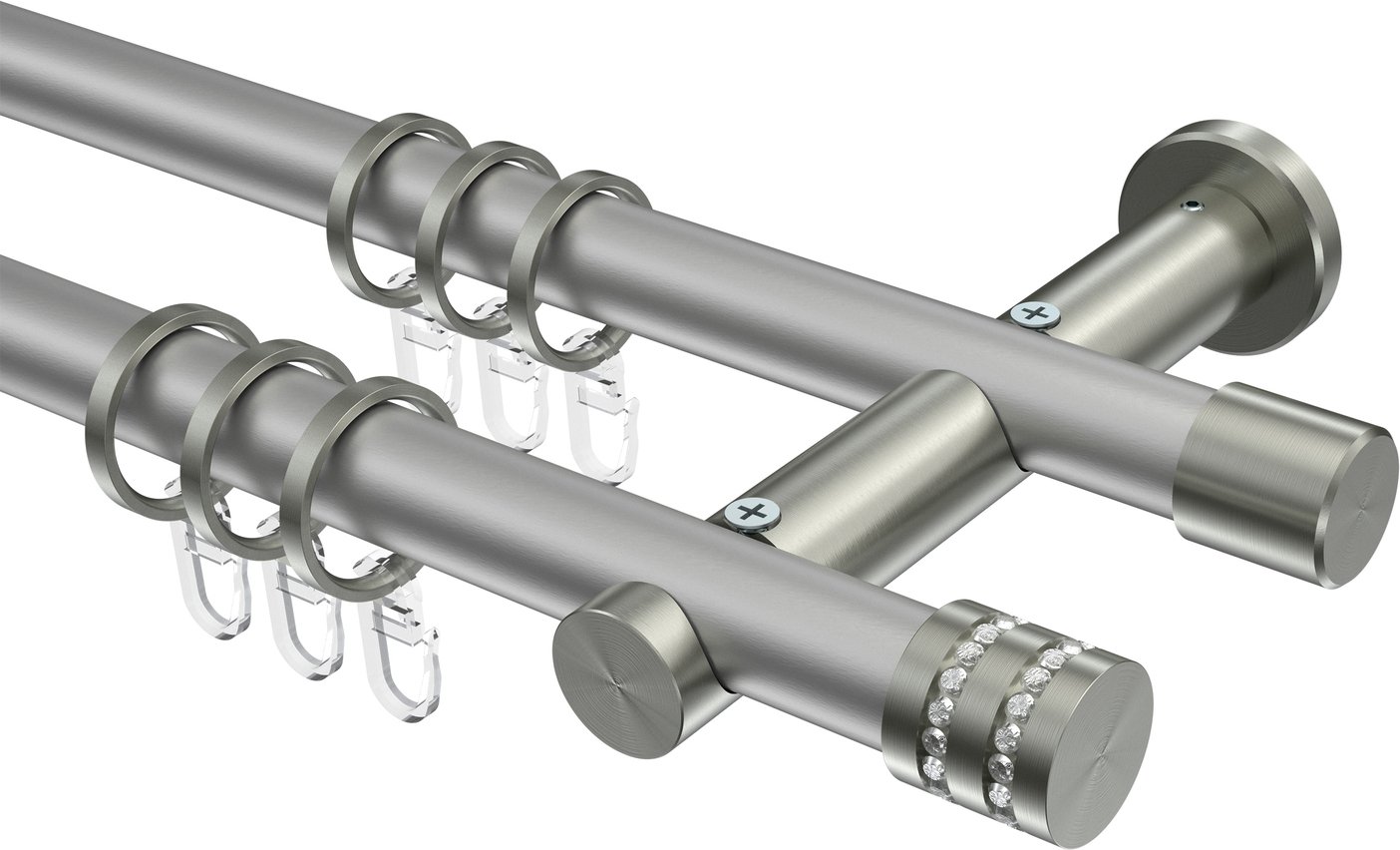 Informationen zu Gardinenstange Metall 20 mm Ø 2-läufig PLATON - Estana Silbergrau / Edelstahl-Optik: