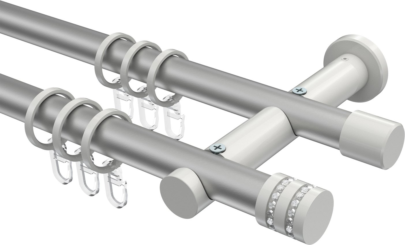 Gardinenstangen aus Metall in 20 mm Ø, 2-läufig, Modell PLATON - Estana Silbergrau / Weiß