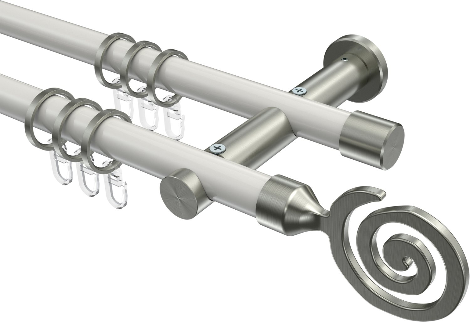 Gardinenstangen aus Metall in 20 mm Ø, 2-läufig, Modell PLATON - Galaxa Weiß / Edelstahl-Optik