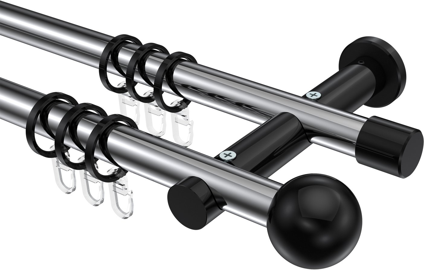 Informationen zu Gardinenstange Metall 20 mm Ø 2-läufig PLATON - Luino Chrom / Schwarz: