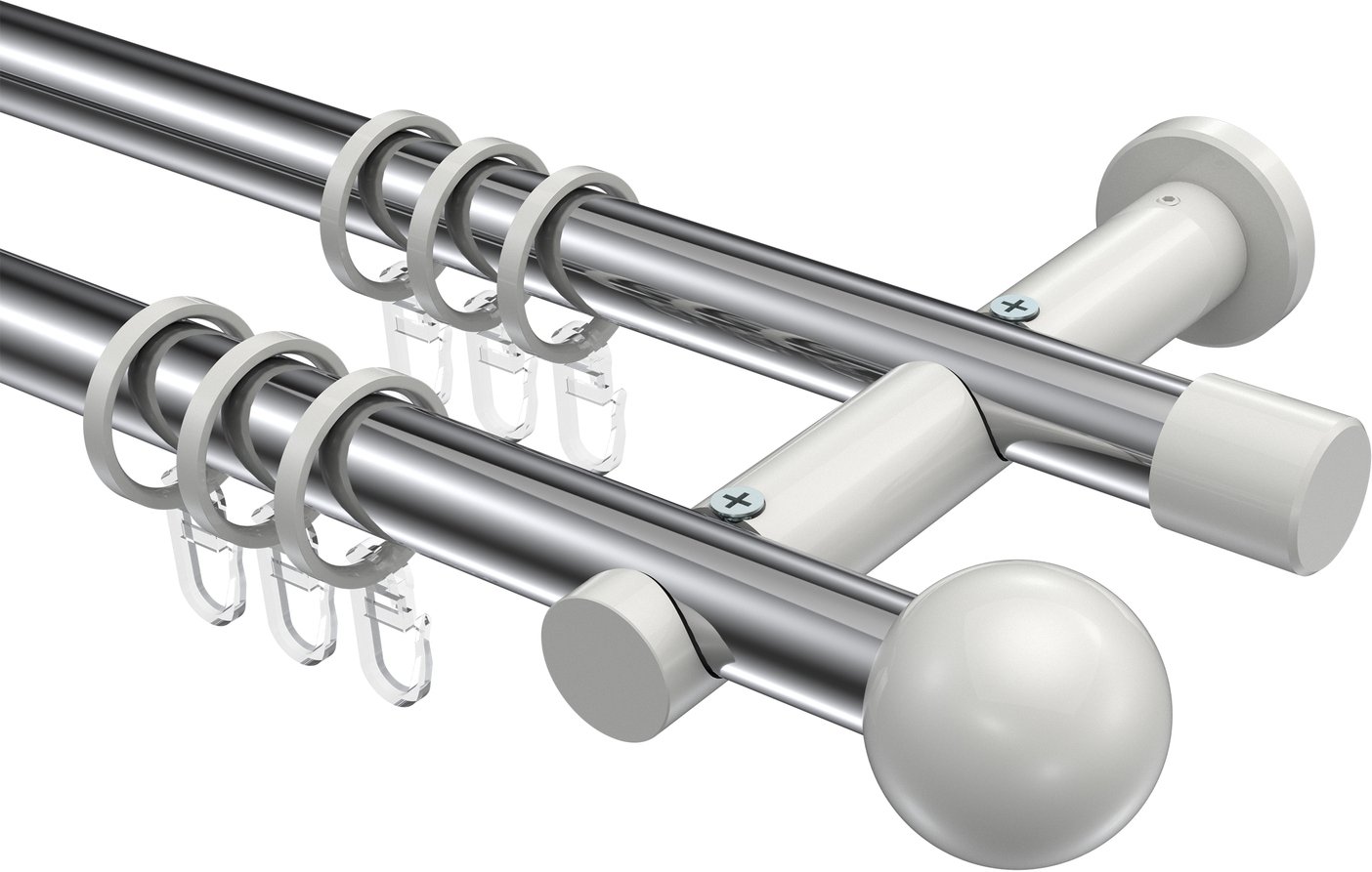 Informationen zu Gardinenstange Metall 20 mm Ø 2-läufig PLATON - Luino Chrom / Weiß: