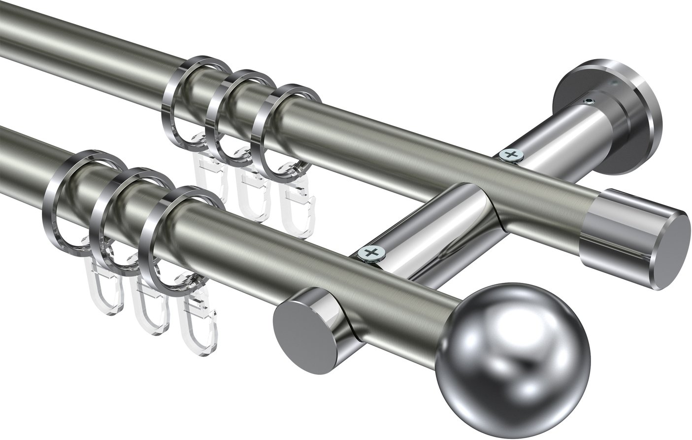Gardinenstangen aus Metall in 20 mm Ø, 2-läufig, Modell PLATON - Luino Edelstahl-Optik / Chrom