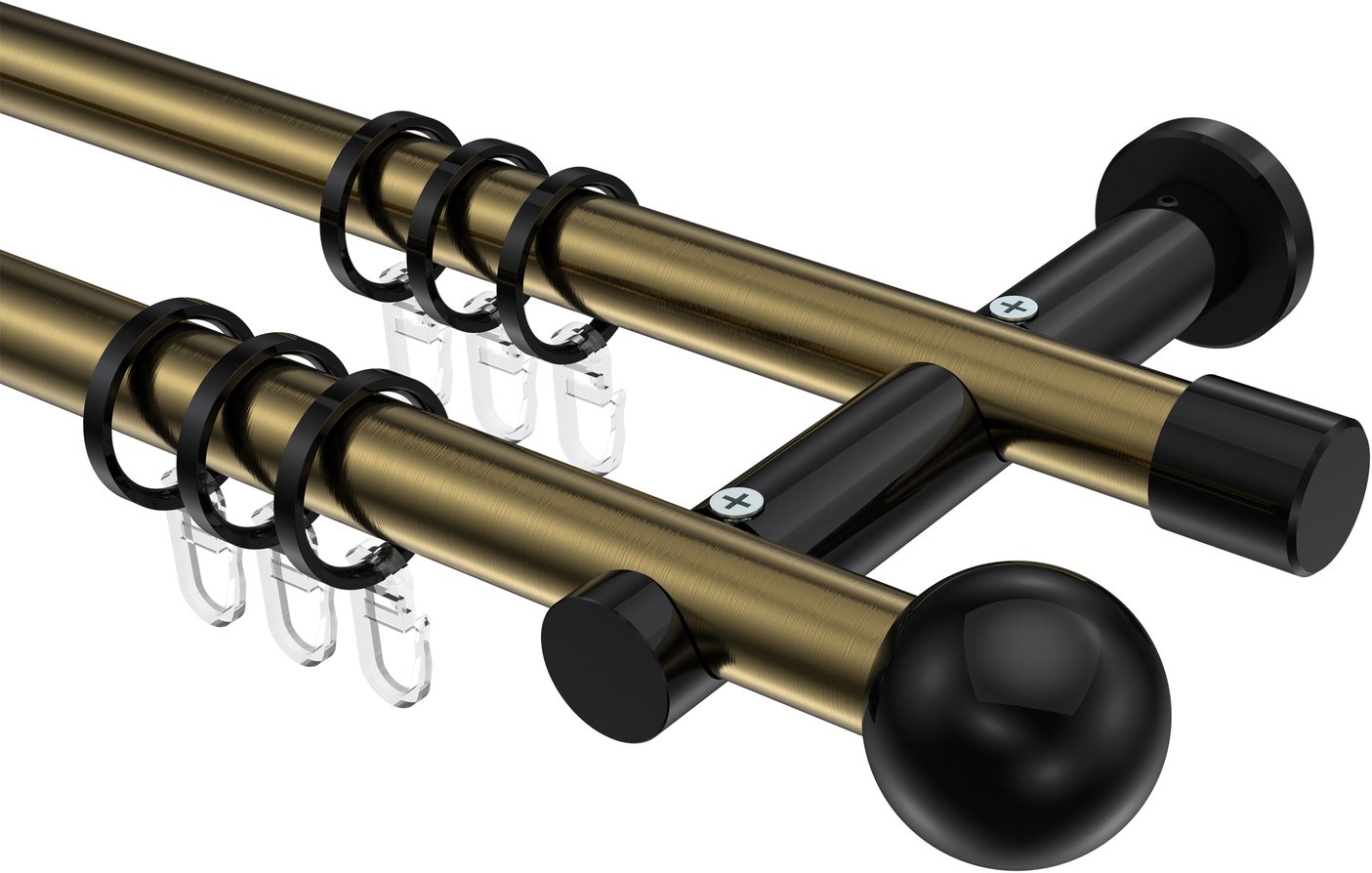 Gardinenstangen aus Metall in 20 mm Ø, 2-läufig, Modell PLATON - Luino Messing Antik / Schwarz