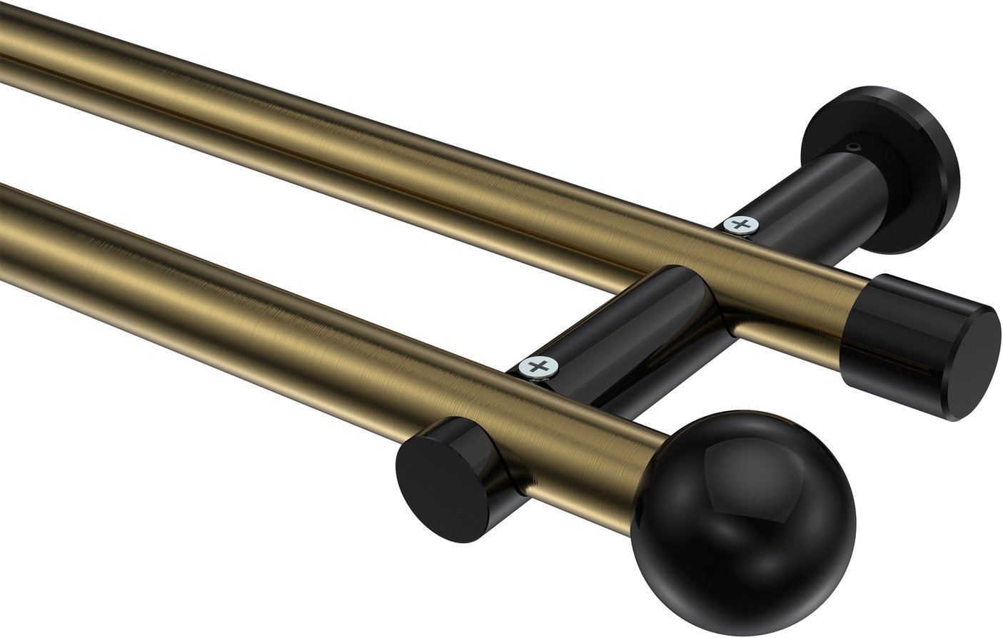 Informationen zu Gardinenstange Metall 20 mm Ø 2-läufig PLATON - Luino Messing Antik / Schwarz (ohne Ringe):