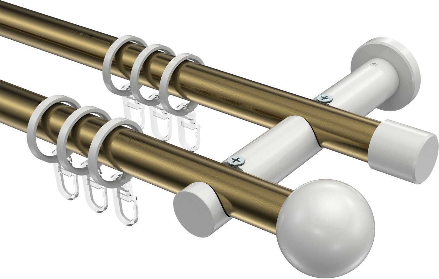 Informationen zu Gardinenstange Metall 20 mm Ø 2-läufig PLATON - Luino Messing Antik / Weiß: