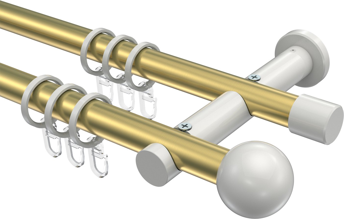 Gardinenstangen aus Metall in 20 mm Ø, 2-läufig, Modell PLATON - Luino Messing-Optik / Weiß