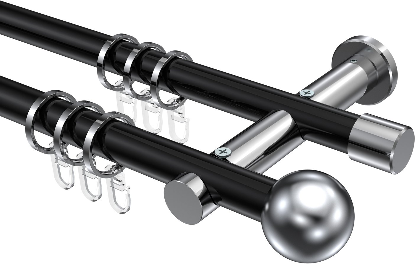 Gardinenstangen aus Metall in 20 mm Ø, 2-läufig, Modell PLATON - Luino Schwarz / Chrom