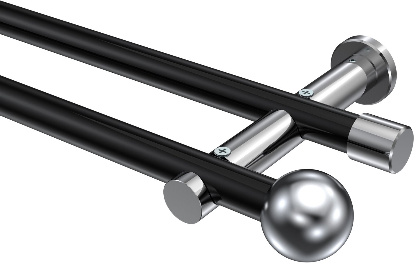 Informationen zu Gardinenstange Metall 20 mm Ø 2-läufig PLATON - Luino Schwarz / Chrom (ohne Ringe):