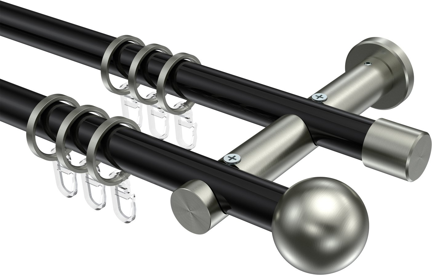 Informationen zu Gardinenstange Metall 20 mm Ø 2-läufig PLATON - Luino Schwarz / Edelstahl-Optik: