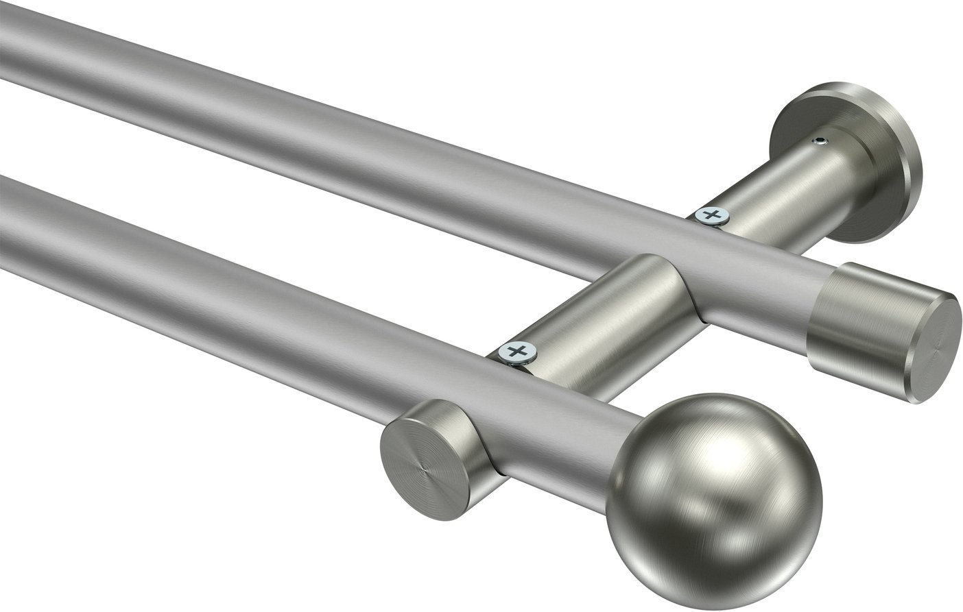 Informationen zu Gardinenstange Metall 20 mm Ø 2-läufig PLATON - Luino Silbergrau / Edelstahl-Optik (ohne Ringe):