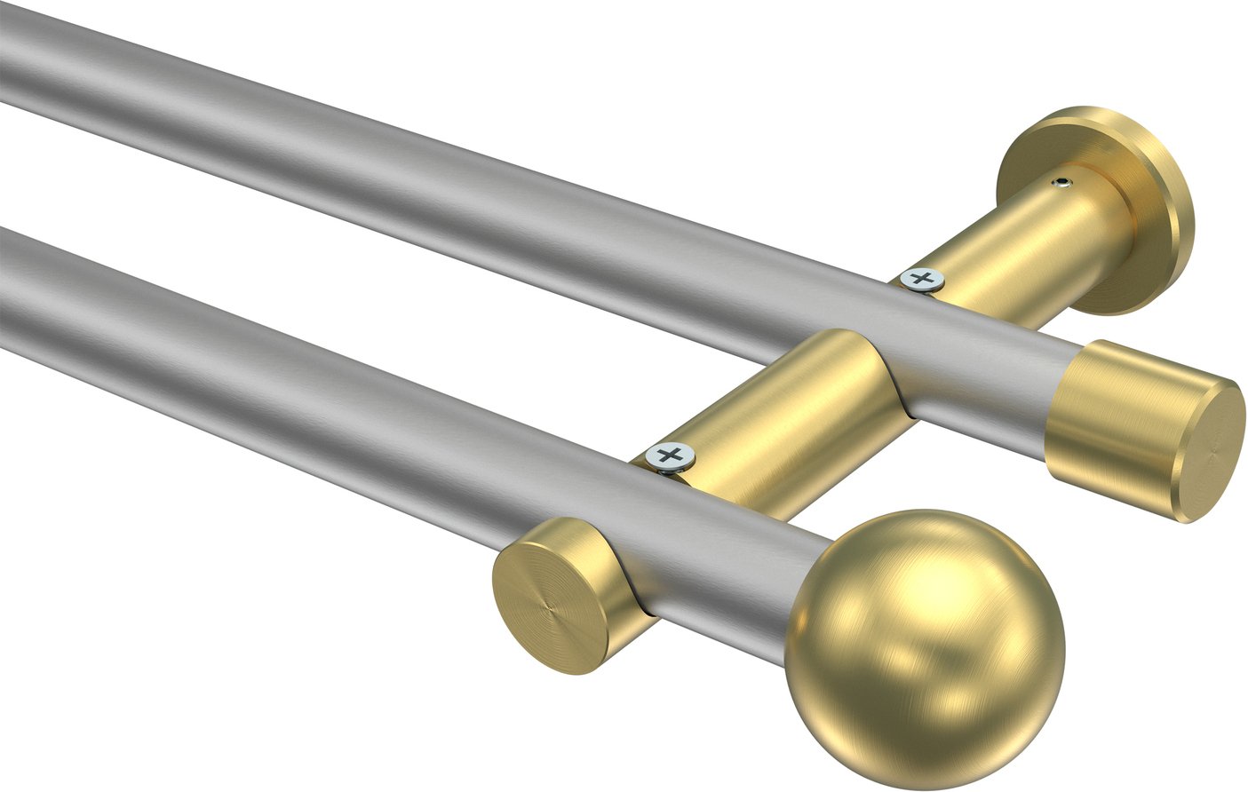 Informationen zu Gardinenstange Metall 20 mm Ø 2-läufig PLATON - Luino Silbergrau / Messing-Optik (ohne Ringe):