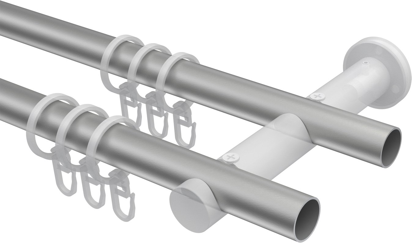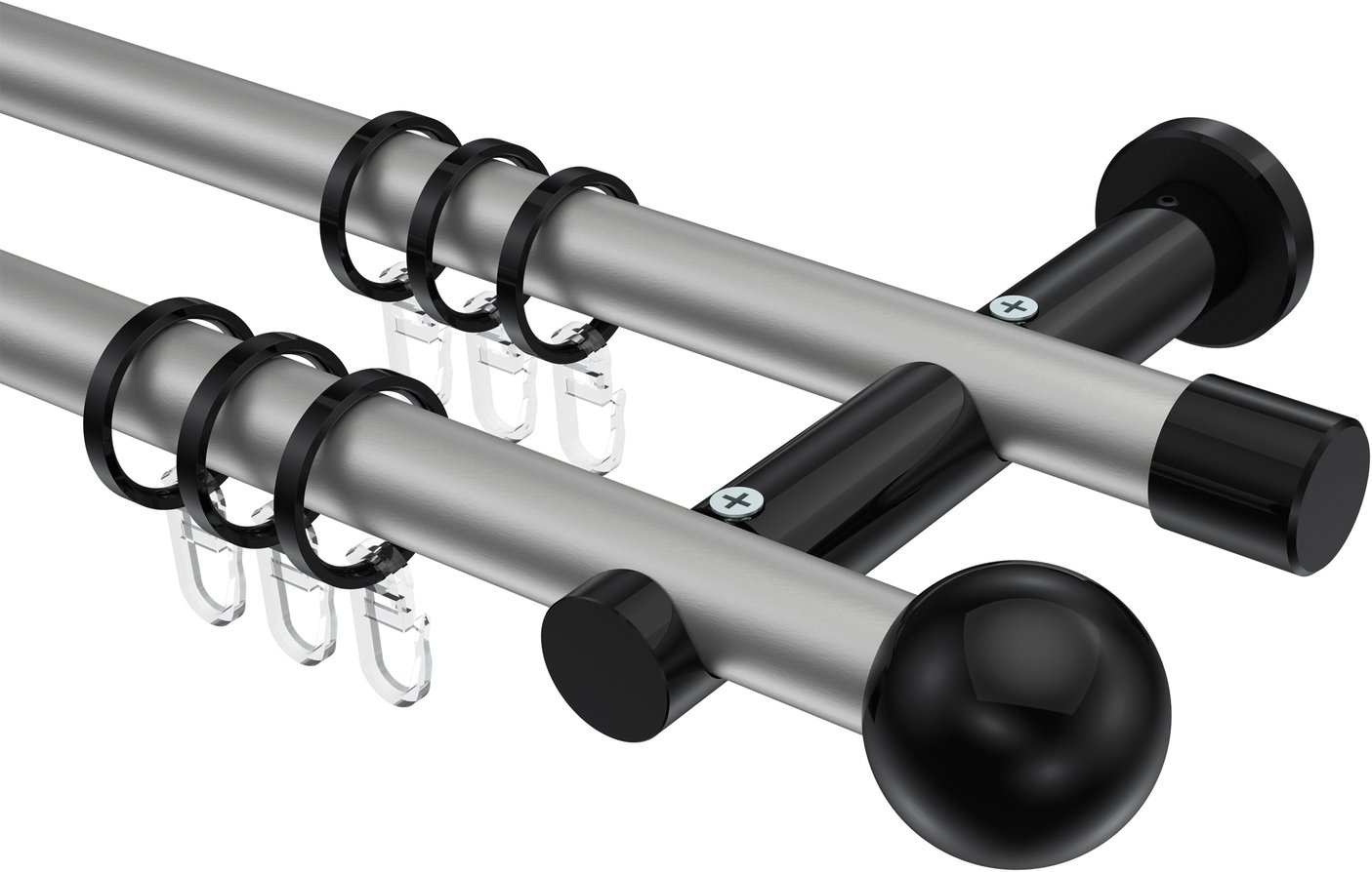 Informationen zu Gardinenstange Metall 20 mm Ø 2-läufig PLATON - Luino Silbergrau / Schwarz:
