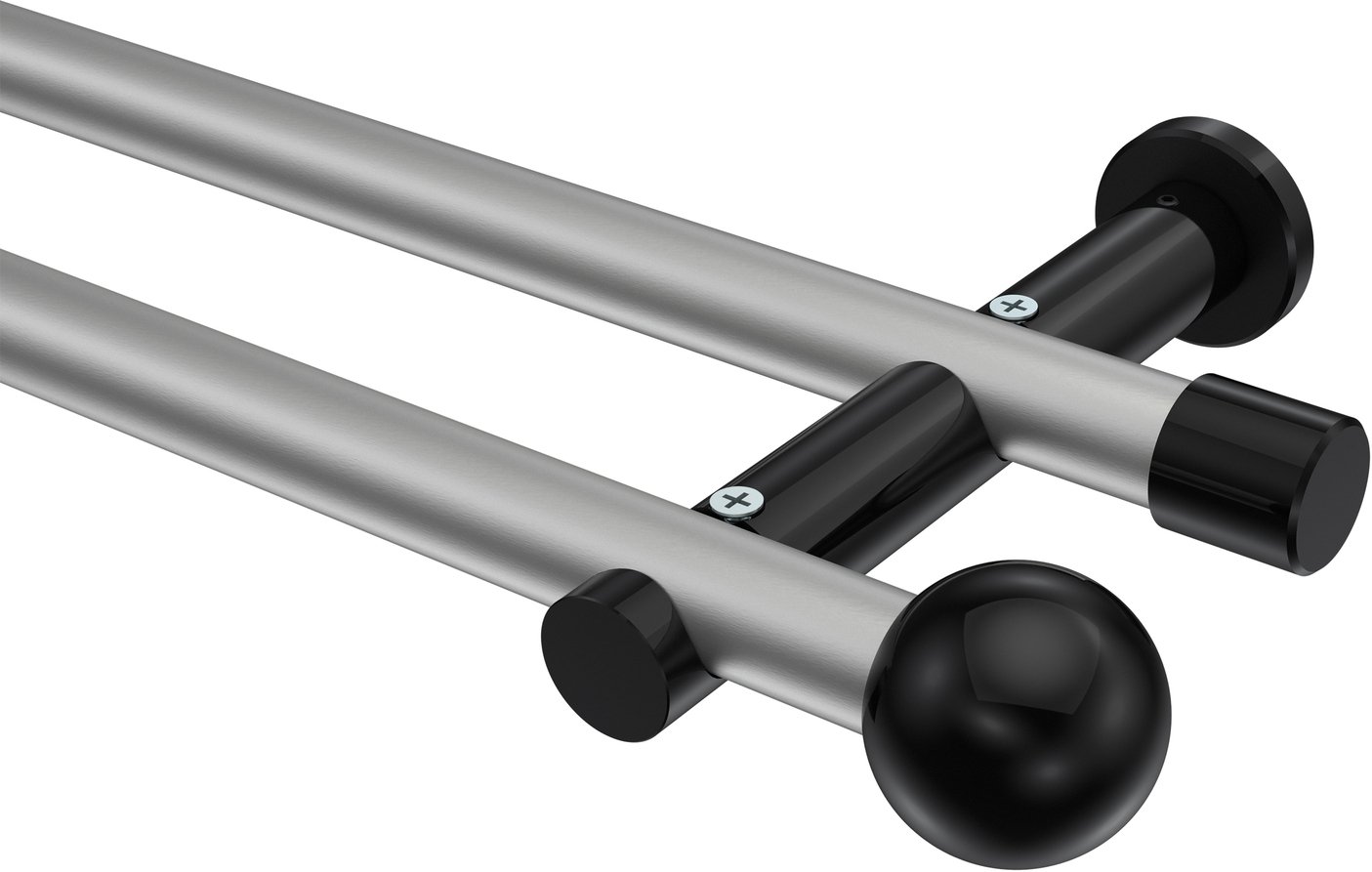 Informationen zu Gardinenstange Metall 20 mm Ø 2-läufig PLATON - Luino Silbergrau / Schwarz (ohne Ringe):