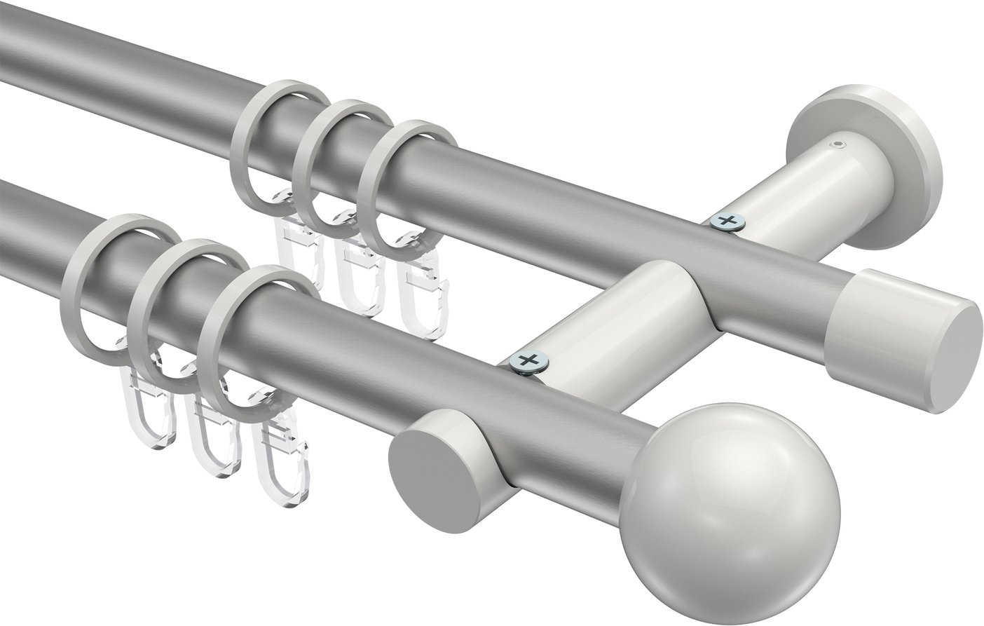 Informationen zu Gardinenstange Metall 20 mm Ø 2-läufig PLATON - Luino Silbergrau / Weiß: