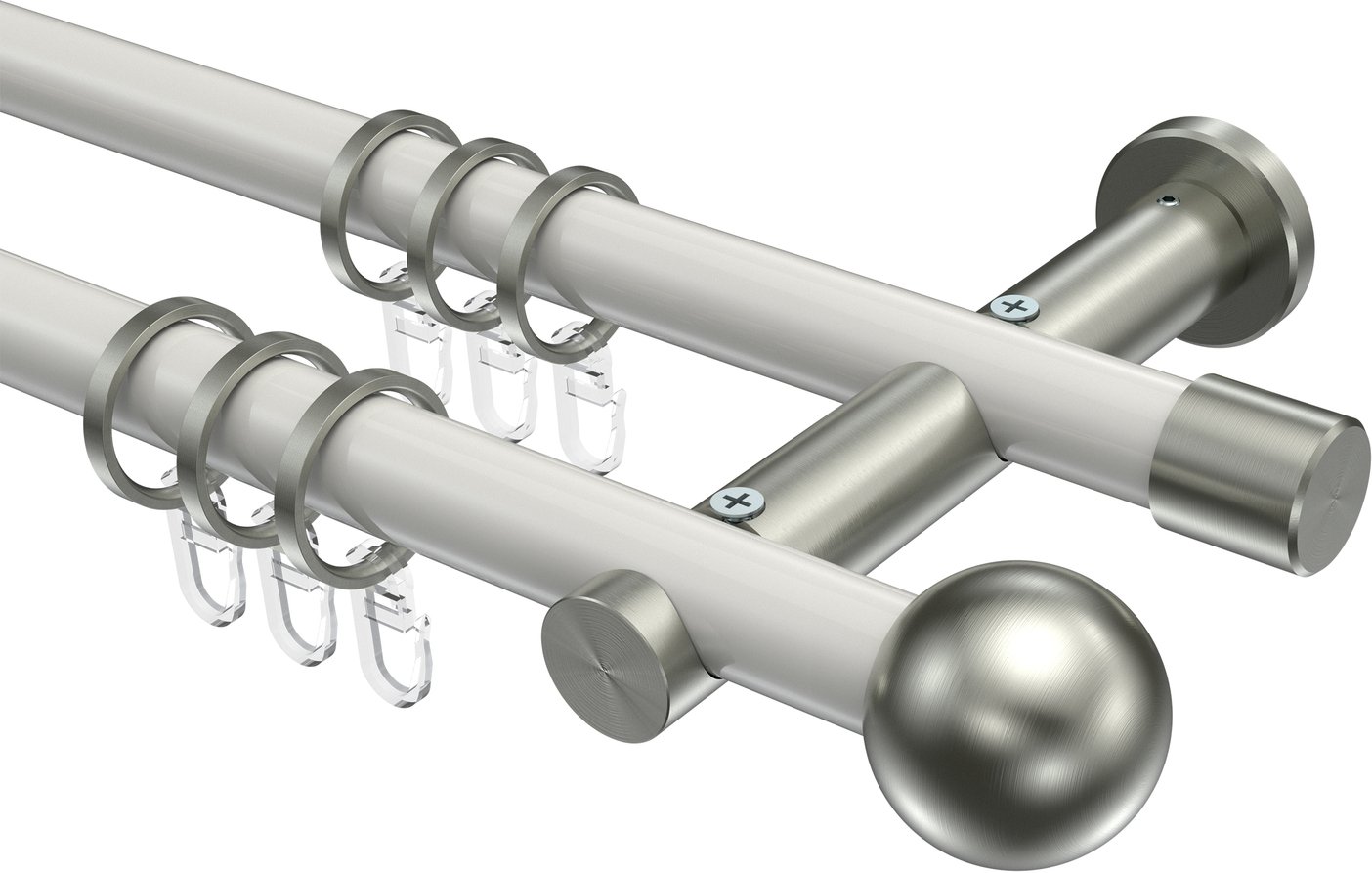 Informationen zu Gardinenstange Metall 20 mm Ø 2-läufig PLATON - Luino Weiß / Edelstahl-Optik: