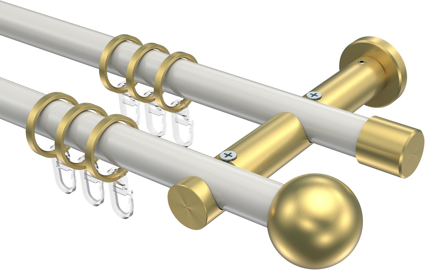 Gardinenstangen aus Metall in 20 mm Ø, 2-läufig, Modell PLATON - Luino Weiß / Messing-Optik