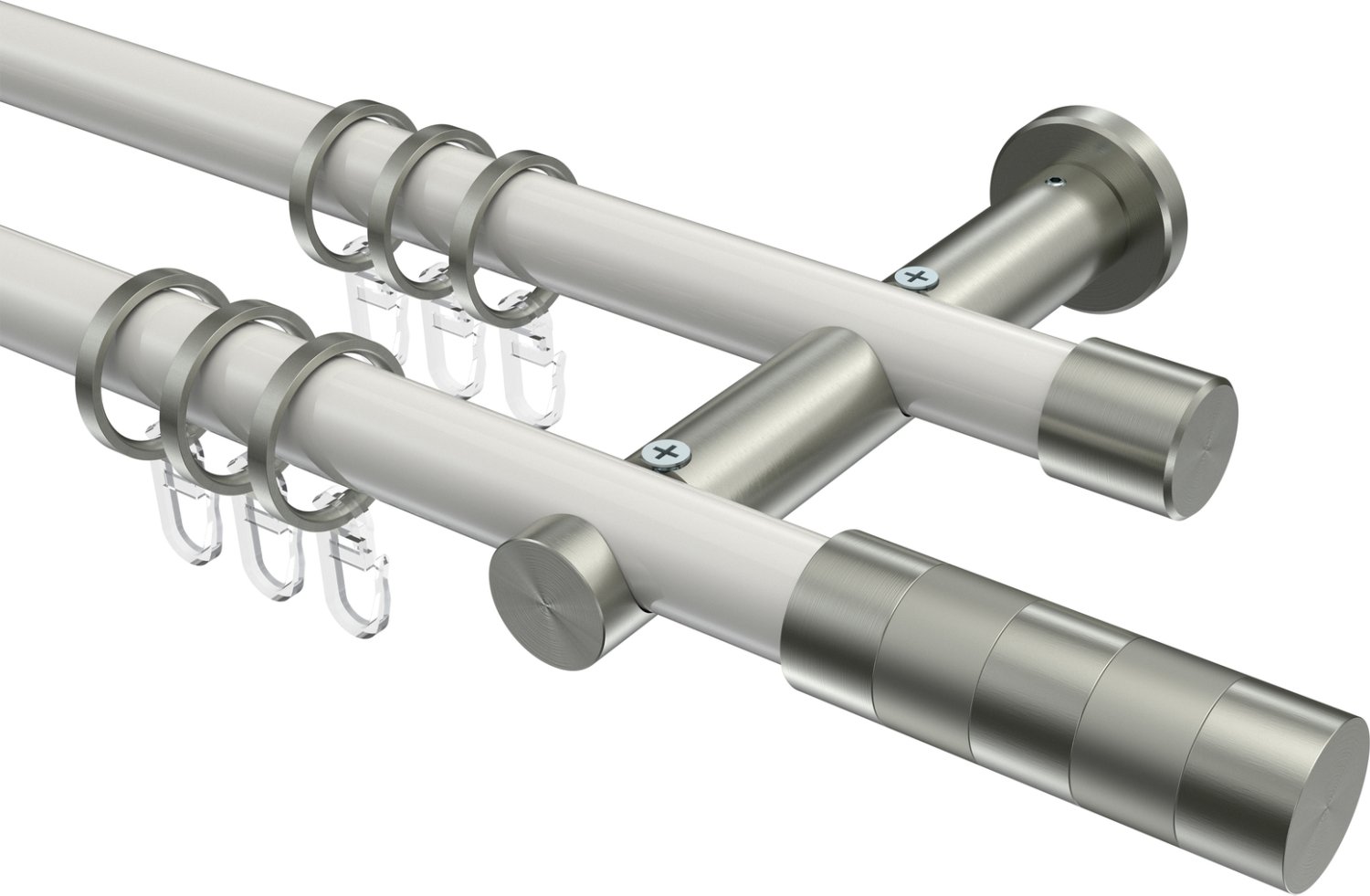 Gardinenstangen aus Metall in 20 mm Ø, 2-läufig, Modell PLATON - Mavell Weiß / Edelstahl-Optik