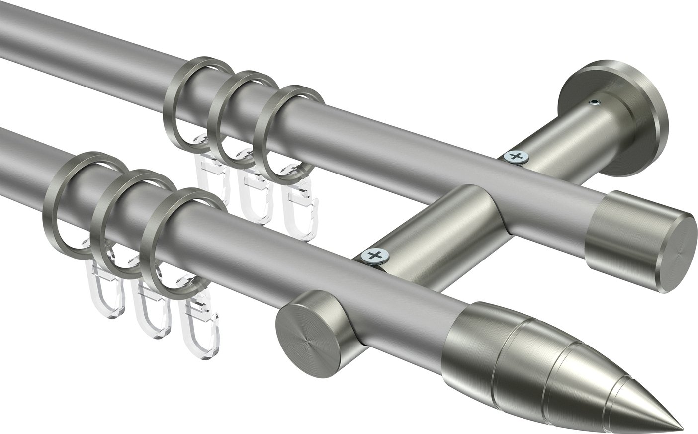 Gardinenstangen aus Metall in 20 mm Ø, 2-läufig, Modell PLATON - Samanto Silbergrau / Edelstahl-Optik