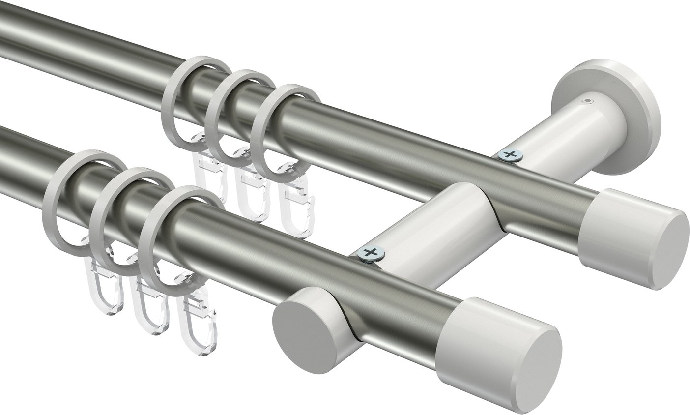 Informationen zu Gardinenstange Metall 20 mm Ø 2-läufig PLATON - Santo Edelstahl-Optik / Weiß: