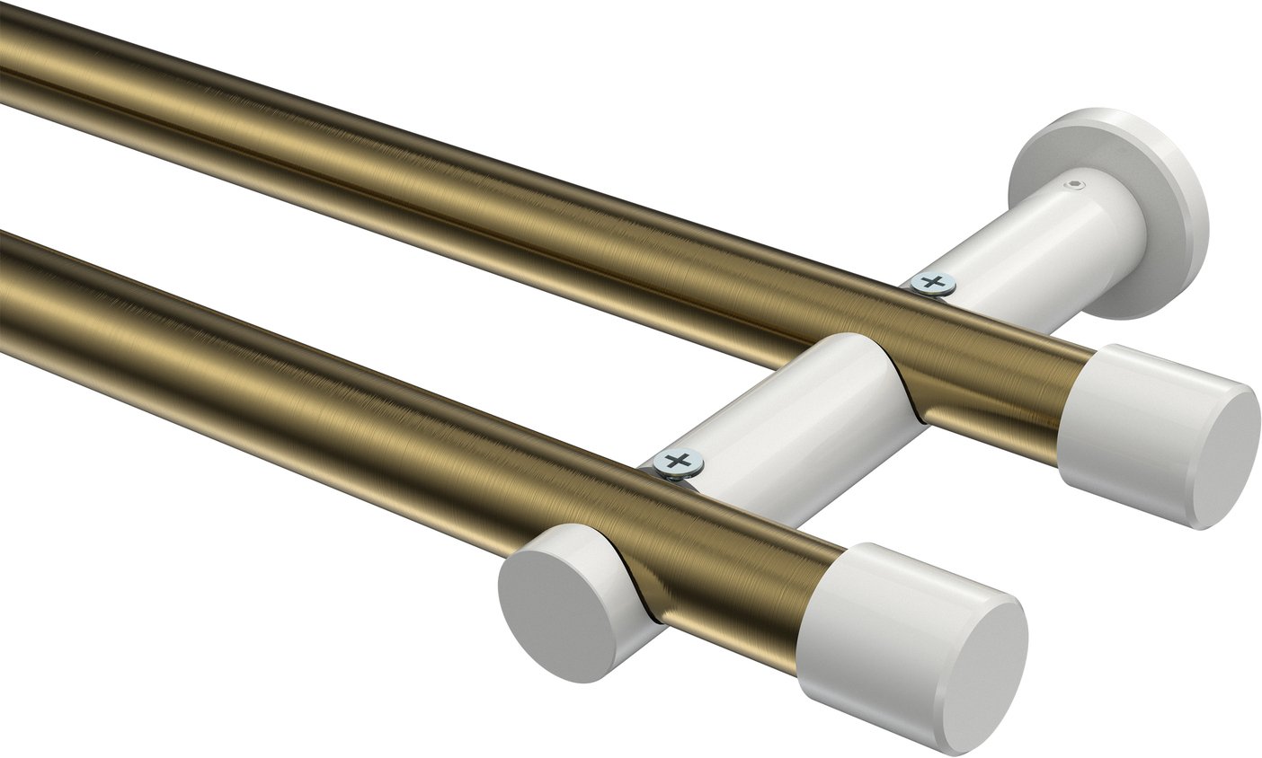 Informationen zu Gardinenstange Metall 20 mm Ø 2-läufig PLATON - Santo Messing Antik / Weiß (ohne Ringe):