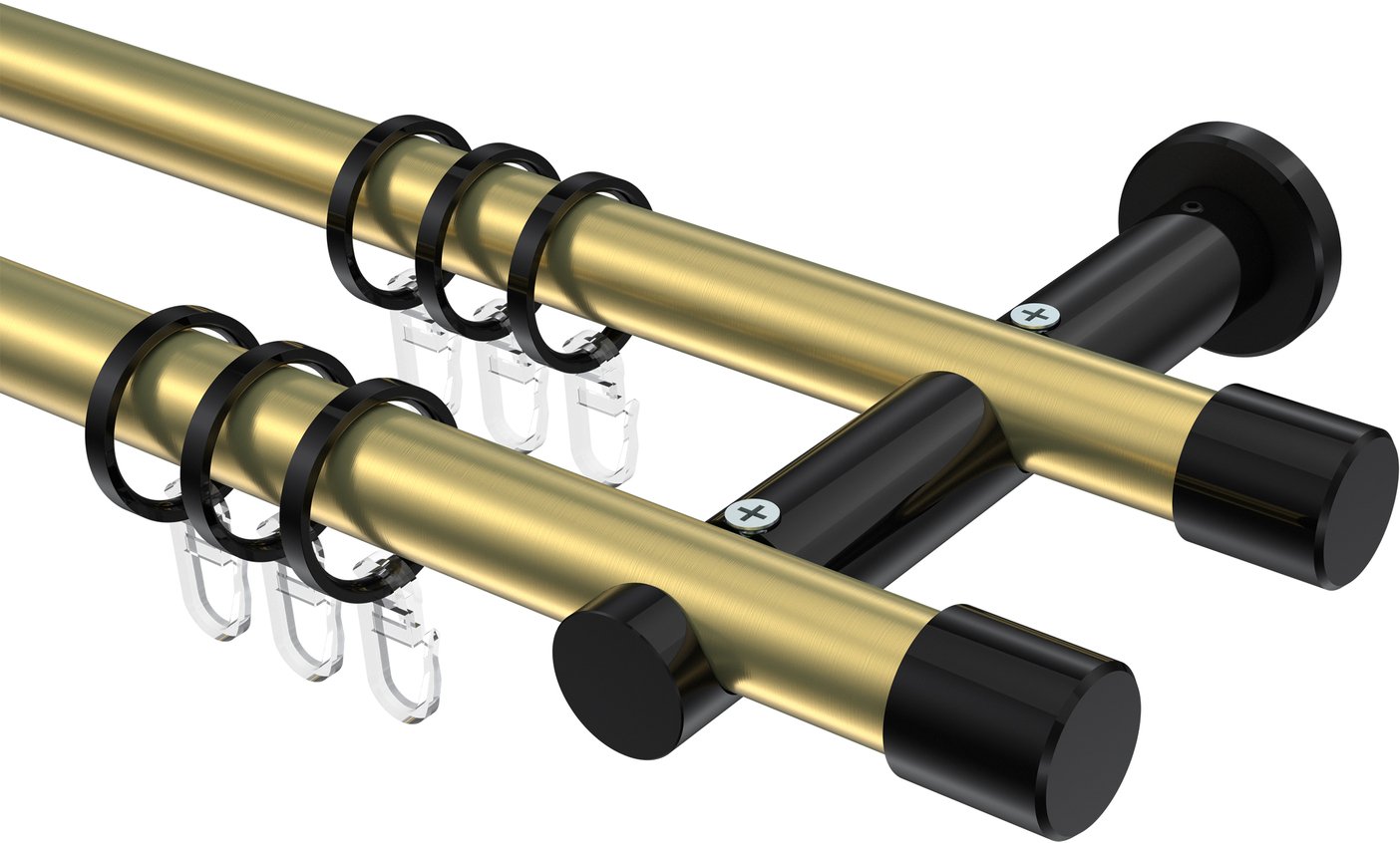 Informationen zu Gardinenstange Metall 20 mm Ø 2-läufig PLATON - Santo Messing-Optik / Schwarz:
