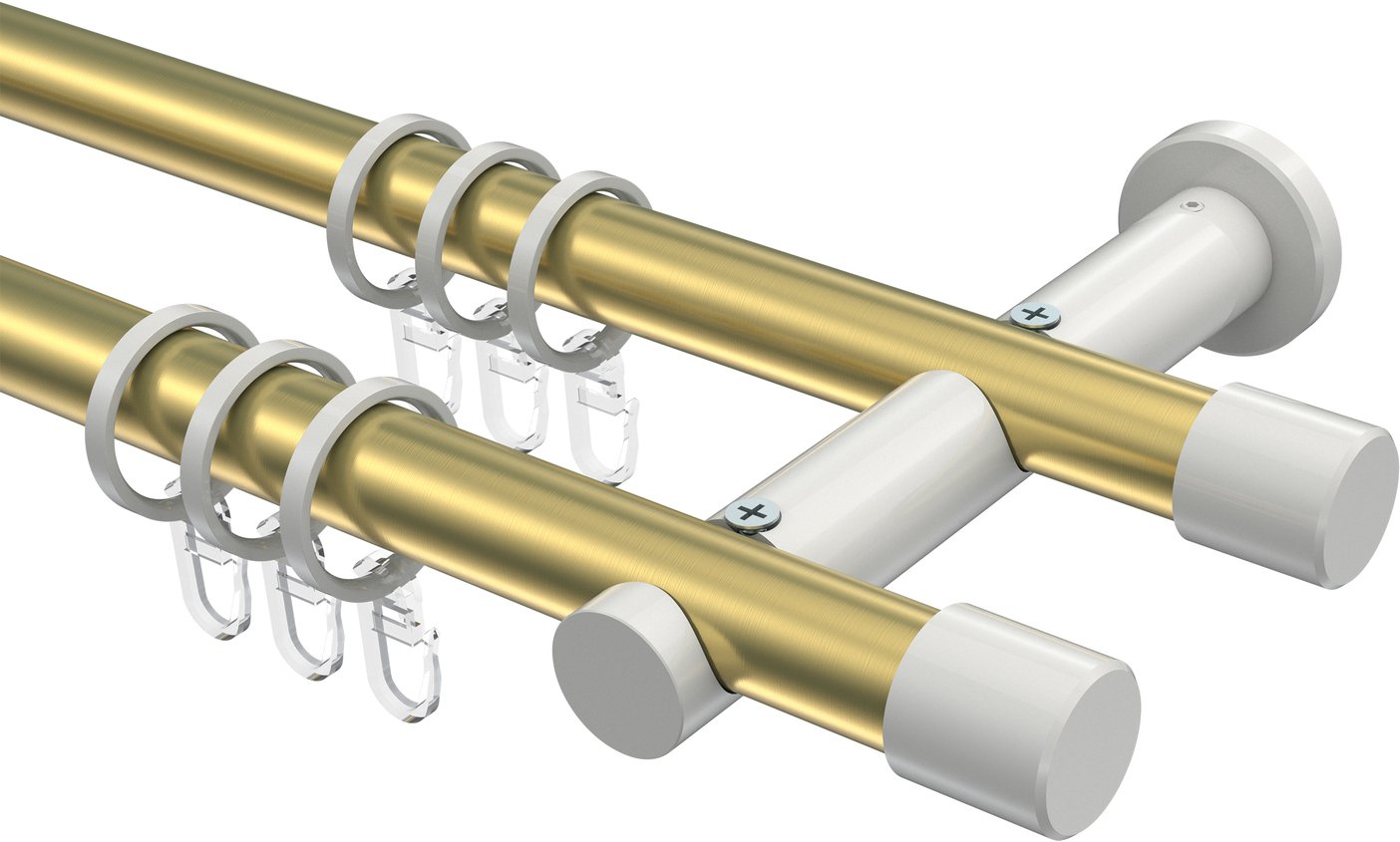 Gardinenstangen aus Metall in 20 mm Ø, 2-läufig, Modell PLATON - Santo Messing-Optik / Weiß