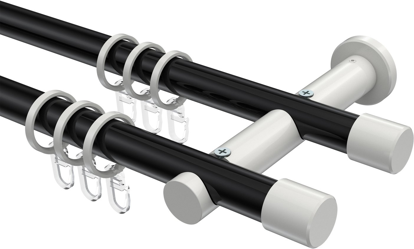 Informationen zu Gardinenstange Metall 20 mm Ø 2-läufig PLATON - Santo Schwarz / Weiß: