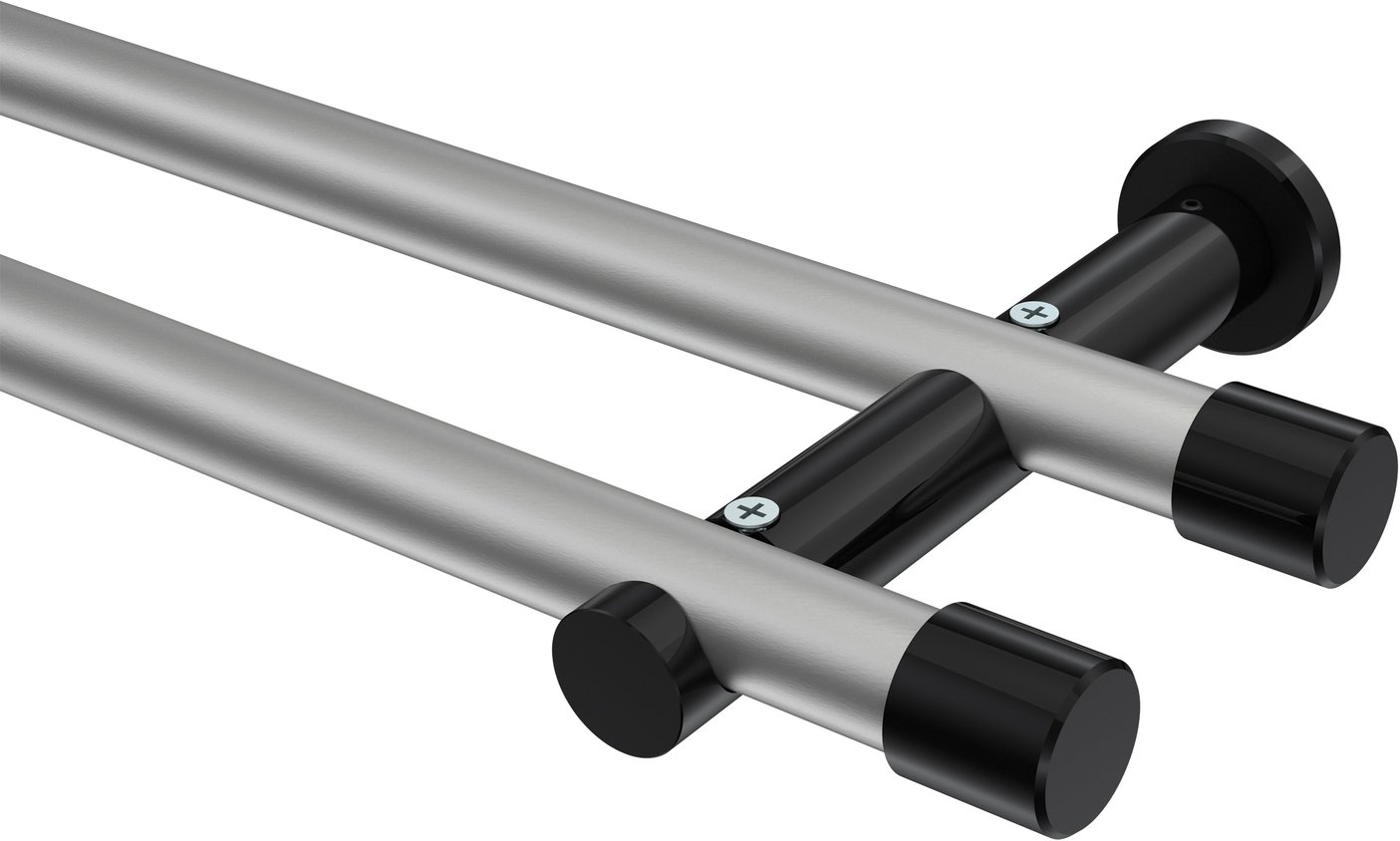 Informationen zu Gardinenstange Metall 20 mm Ø 2-läufig PLATON - Santo Silbergrau / Schwarz (ohne Ringe):
