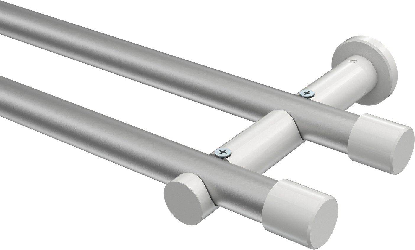 Informationen zu Gardinenstange Metall 20 mm Ø 2-läufig PLATON - Santo Silbergrau / Weiß (ohne Ringe):