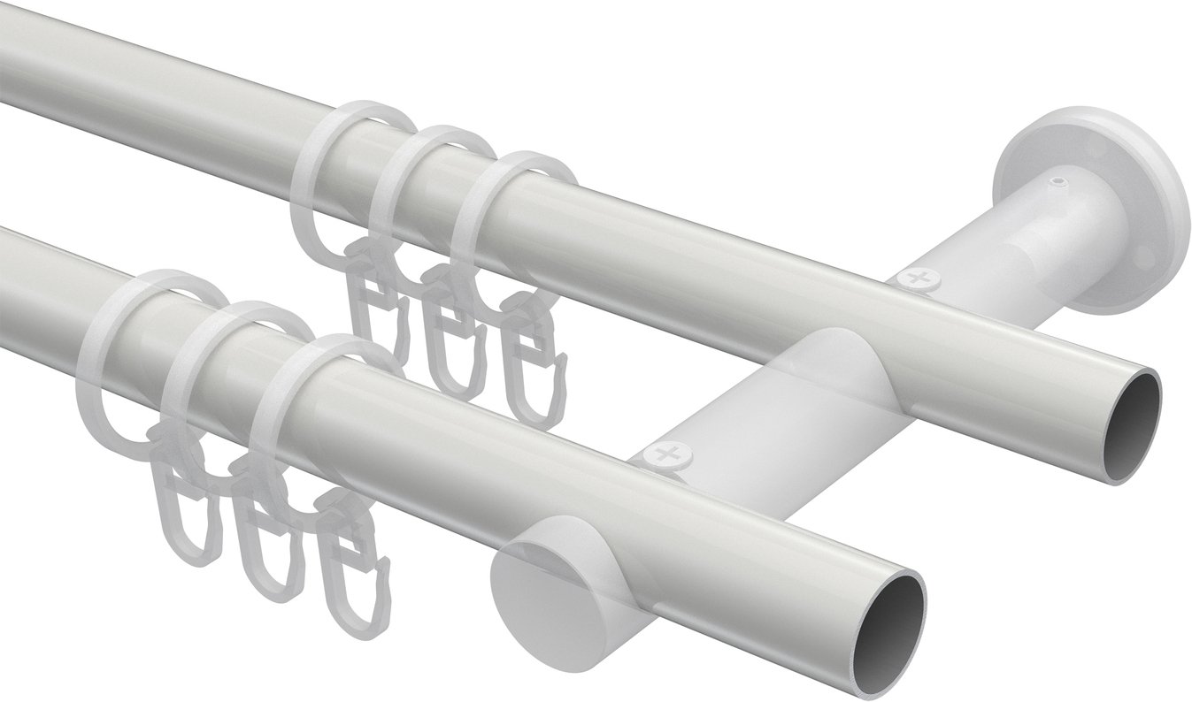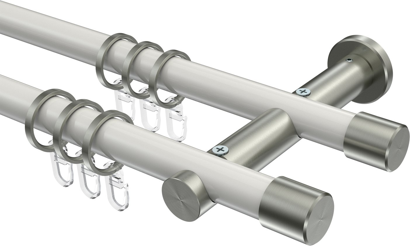 Informationen zu Gardinenstange Metall 20 mm Ø 2-läufig PLATON - Santo Weiß / Edelstahl-Optik: