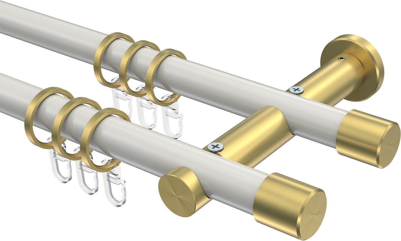 Gardinenstangen aus Metall in 20 mm Ø, 2-läufig, Modell PLATON - Santo Weiß / Messing-Optik