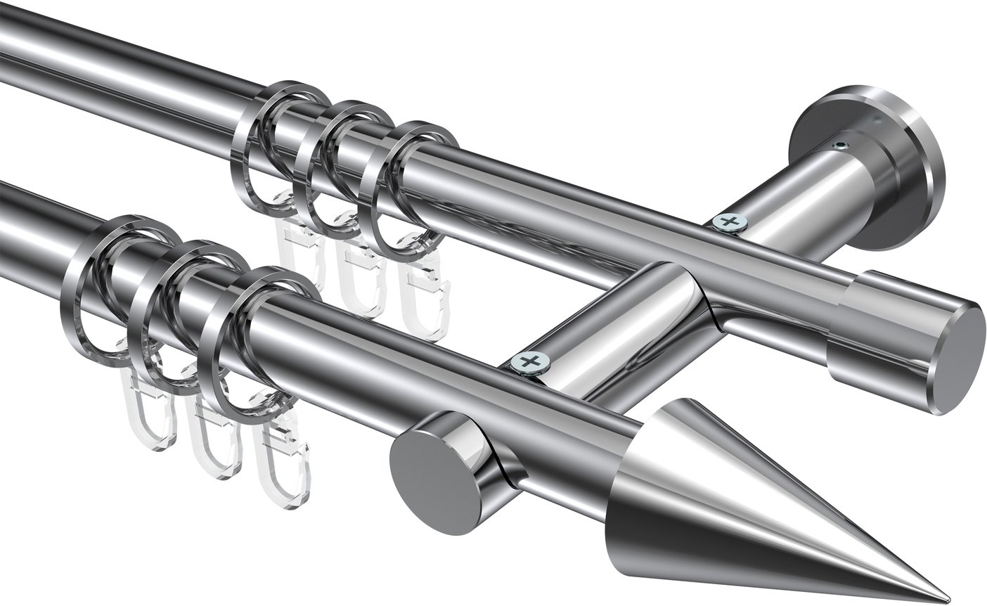 Gardinenstangen aus Metall in 20 mm Ø, 2-läufig, Modell PLATON - Savio Chrom