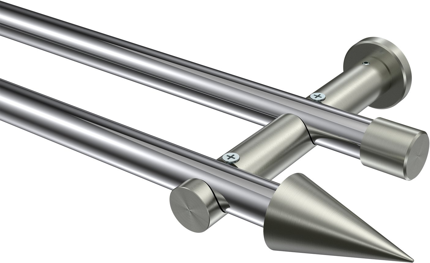 Gardinenstangen aus Metall in 20 mm Ø, 2-läufig, Modell PLATON - Savio Chrom / Edelstahl-Optik (ohne Ringe)