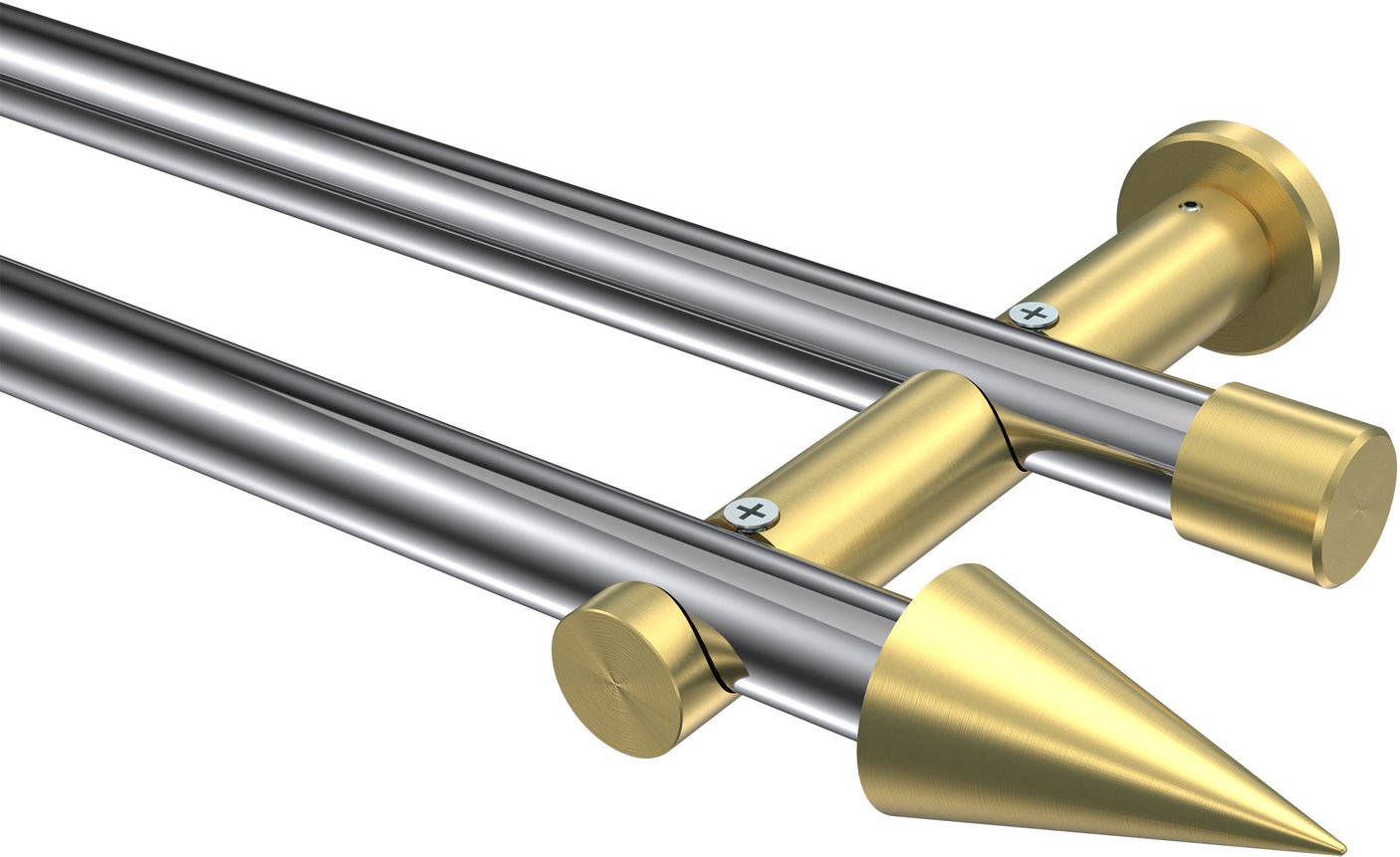 Informationen zu Gardinenstange Metall 20 mm Ø 2-läufig PLATON - Savio Chrom / Messing-Optik (ohne Ringe):