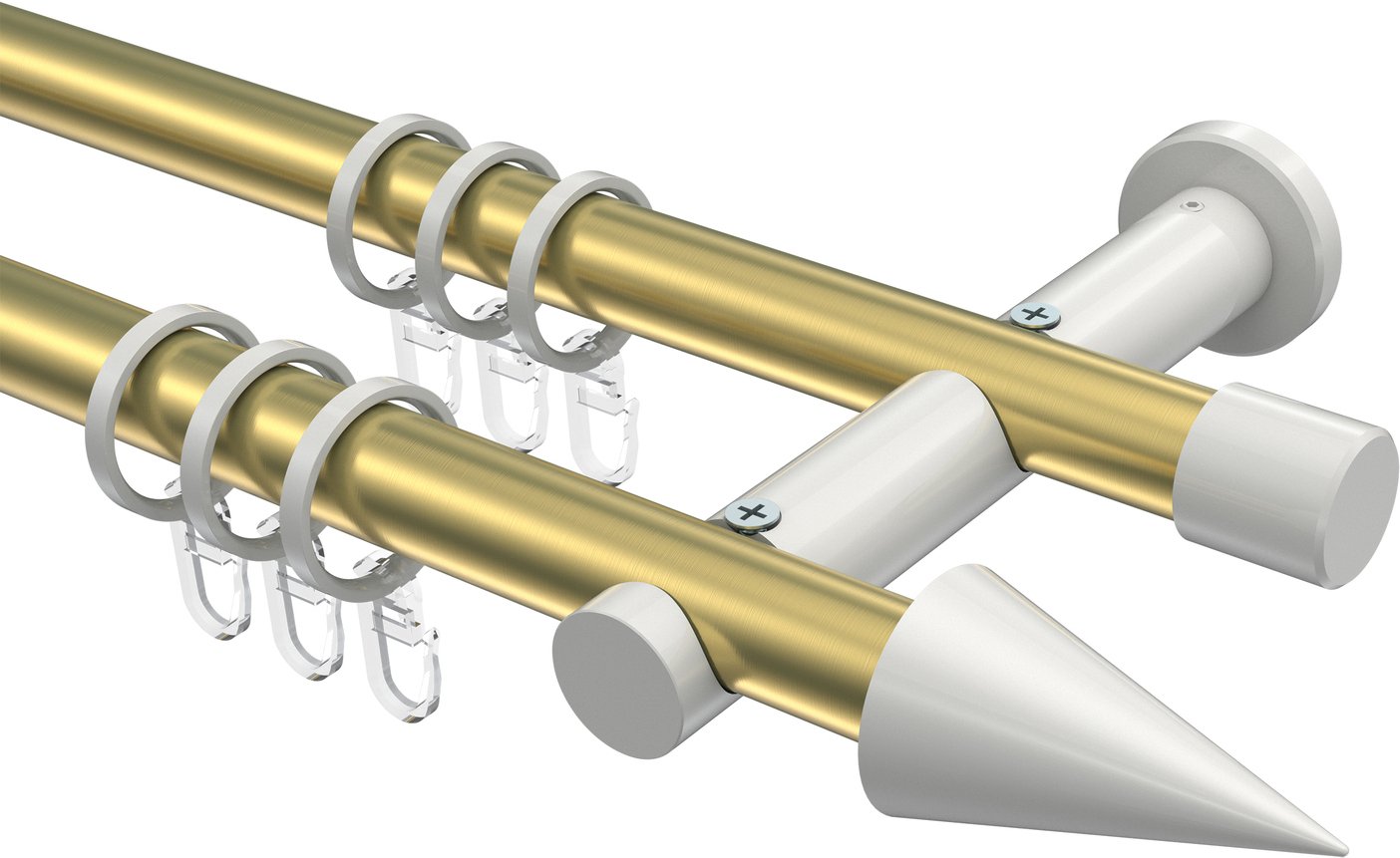Informationen zu Gardinenstange Metall 20 mm Ø 2-läufig PLATON - Savio Messing-Optik / Weiß: