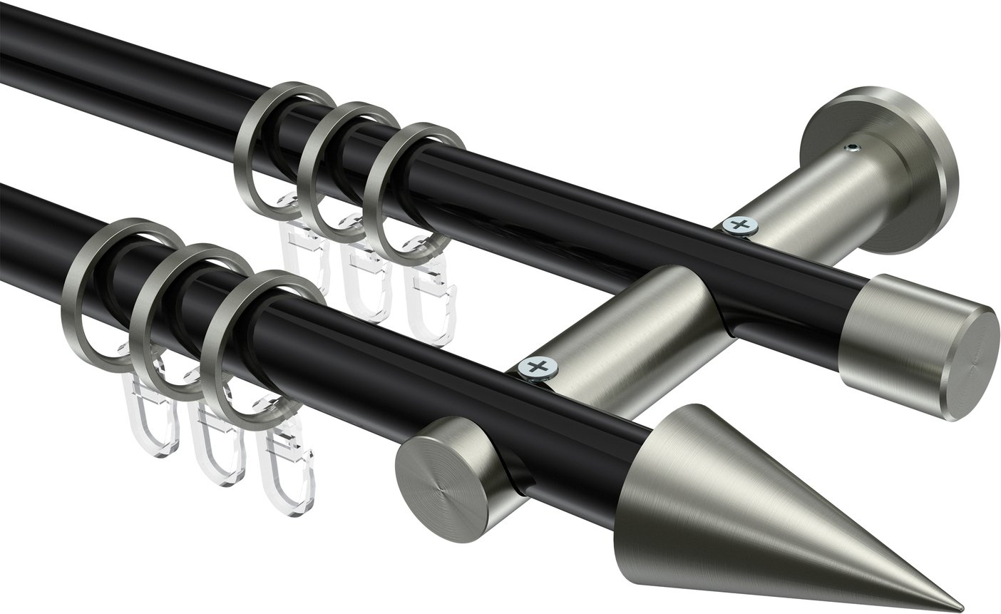 Informationen zu Gardinenstange Metall 20 mm Ø 2-läufig PLATON - Savio Schwarz / Edelstahl-Optik: