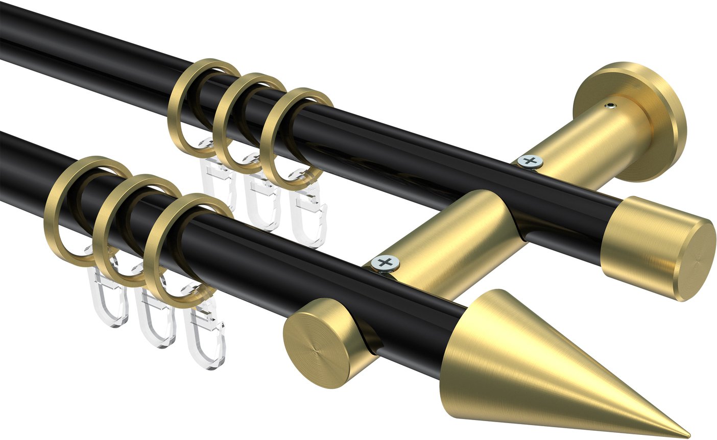 Gardinenstangen aus Metall in 20 mm Ø, 2-läufig, Modell PLATON - Savio Schwarz / Messing-Optik