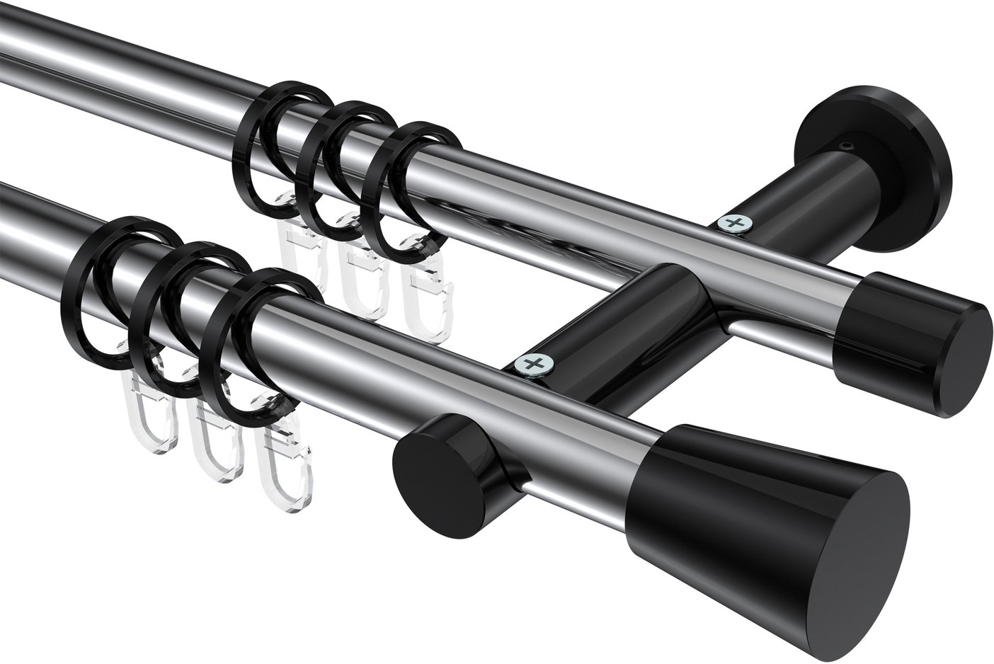 Gardinenstangen aus Metall in 20 mm Ø, 2-läufig, Modell PLATON - Sitra Chrom / Schwarz