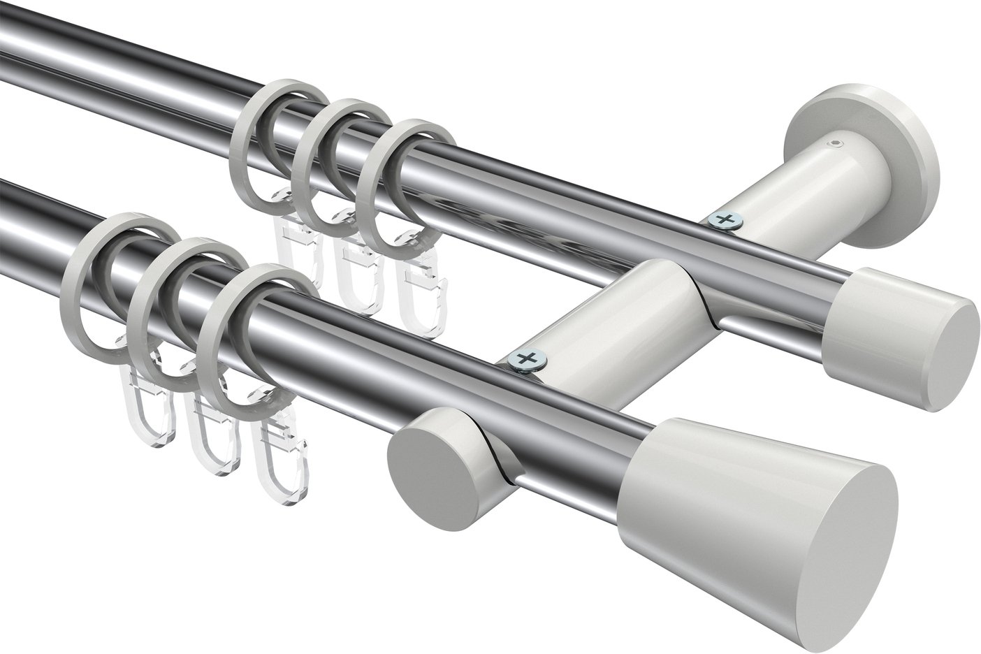 Informationen zu Gardinenstange Metall 20 mm Ø 2-läufig PLATON - Sitra Chrom / Weiß: