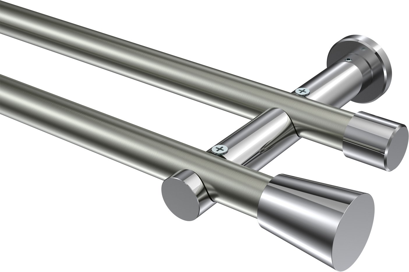 Gardinenstangen aus Metall in 20 mm Ø, 2-läufig, Modell PLATON - Sitra Edelstahl-Optik / Chrom (ohne Ringe)