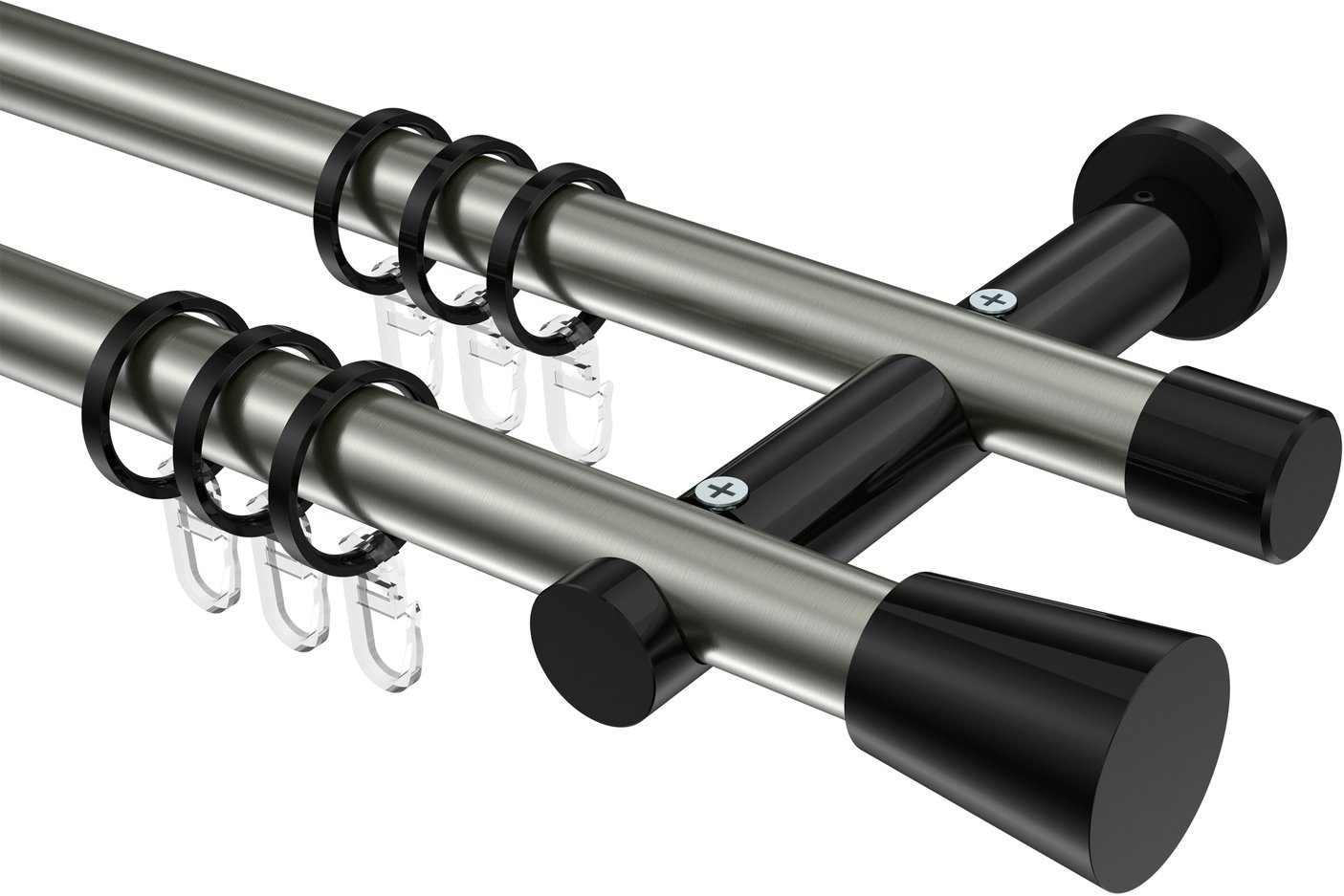 Gardinenstangen aus Metall in 20 mm Ø, 2-läufig, Modell PLATON - Sitra Edelstahl-Optik / Schwarz