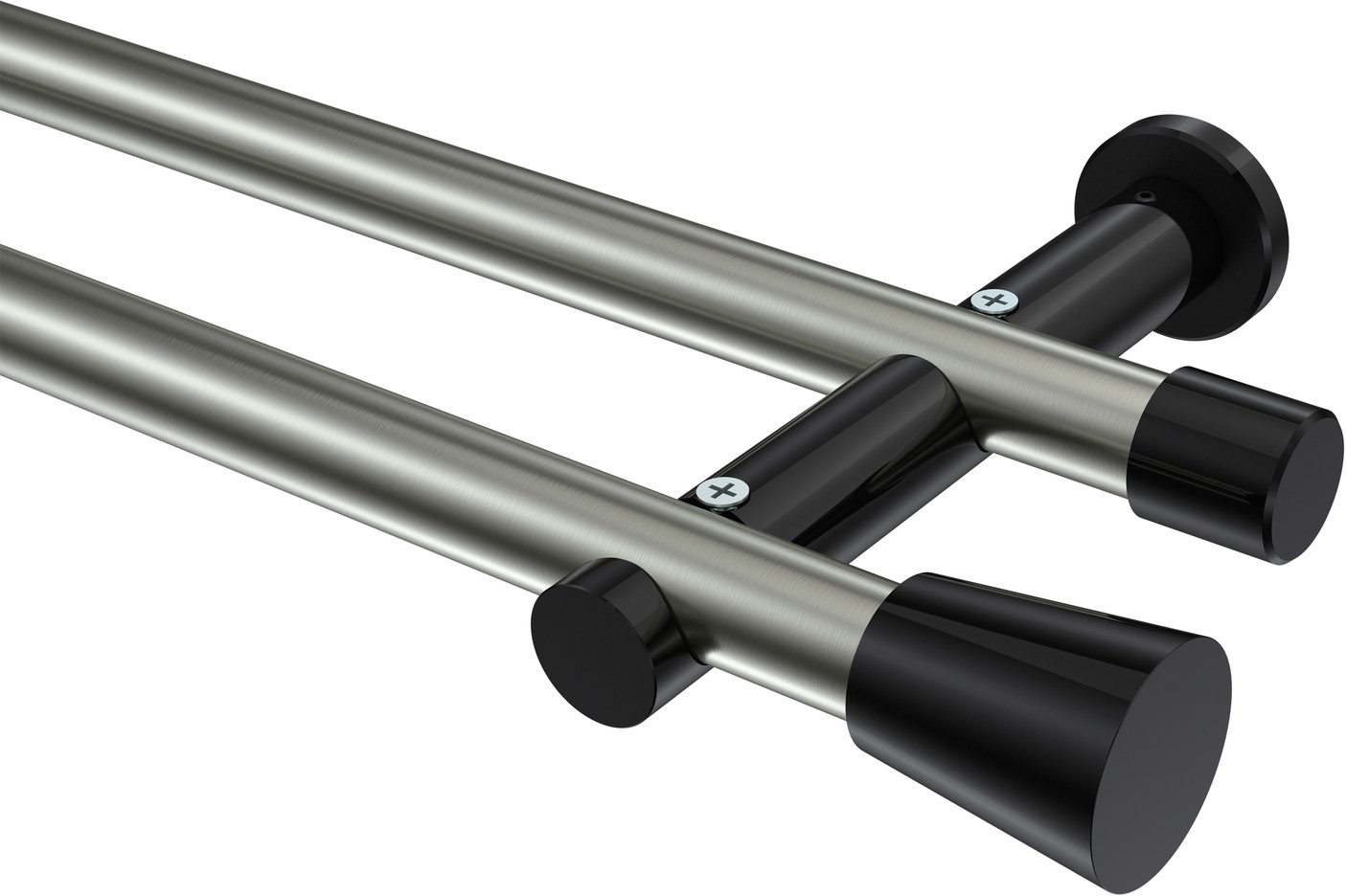 Gardinenstangen aus Metall in 20 mm Ø, 2-läufig, Modell PLATON - Sitra Edelstahl-Optik / Schwarz (ohne Ringe)